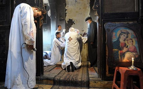 Inside, Father Cherubim Awad said a conspiracy was the only possible explanation for the violence that had engulfed relations between Christians and Muslims in recent weeks.